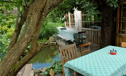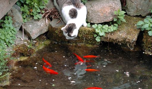 | Im Sommer ist unser "Vereinslido" am Teich unter den Apfelbaum als Frühstücksstätte besonders beliebt! Natürlich inkl. des Herrn KARL, unseren Vereinskater. | ||